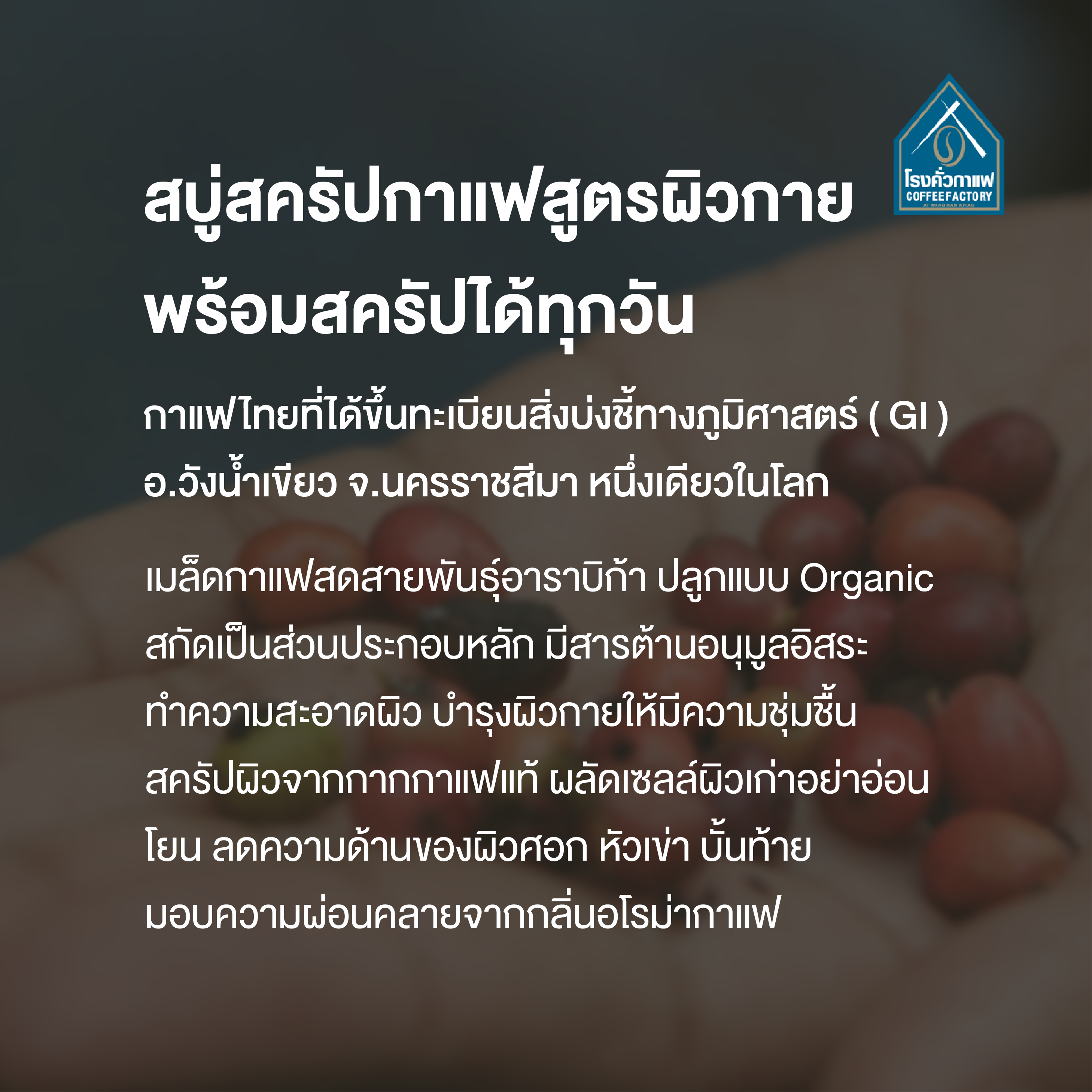 หมวดหมู่ ผลิตภัณฑ์ดูแลผิว Coffee For Skin